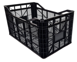 Perforated crate 500x300x250 mm is designed for storing vegetables and fruits. The openwork bottom and walls ensure proper air circulation during storage and transport of products. The box is resistant to low and high temperatures. The dimensions of the box allow to fit up to 13 kg. The container weighs only 0.69 kg and it's stackable up to 10 pieces. The crate is commonly used on production lines in the food industry. It is resistant to mechanical damage and the impact of acids and alkalis. In order to visually identify the container, it is possible to place a logo on the short side. As a standard, the container is produced in black, but with the right quantity, it can be produced in any RAL color.