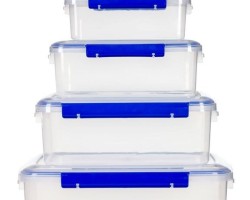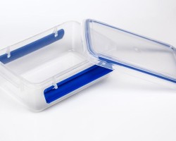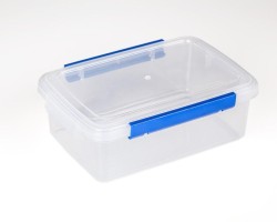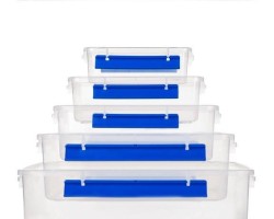 The container is made of hard and durable plastic. The lid and container are transparent, handles are blue. The container has many functions, it is perfect for a warehouse, garage, children's room, wardrobe or kitchen. The containers can be stacked on top of each other. The product is made of raw materials intended for contact with food and it is suitable for recycling.