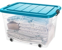 The Roller Box is made of high quality Polypropylene (PP). Extra strength is provided by additional reinforcements on the bottom of the container. The cover is equipped with appropriate hollows that allow stacking containers and thus saving home space. Roller Box ensures the order of stored items in the room, kitchen or utility rooms. Mounted wheels allow you to move the container to any place. The containers are perfect for a children's room as an organizer for blocks and other toys. The product is made of raw materials intended for contact with food and it is suitable for recycling.