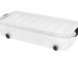 The Roller Box is made of high quality Polypropylene (PP). Extra strength is provided by additional reinforcements on the bottom of the container. The cover is equipped with appropriate hollows that allow stacking containers and thus saving home space. Roller Box ensures the order of stored items in the room, kitchen or utility rooms. Mounted wheels allow you to move the container to any place. The containers are perfect for a children's room as an organizer for blocks and other toys. The product is made of raw materials intended for contact with food and it is suitable for recycling.